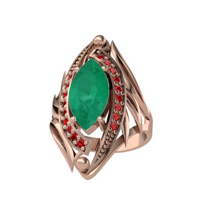 Kök zümrüt ve garnet 14 ayar rose altın yüzük