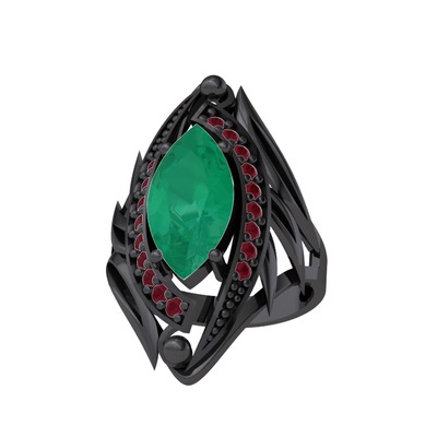 Kök zümrüt ve kök yakut 925 ayar siyah rodyum kaplama gümüş yüzük