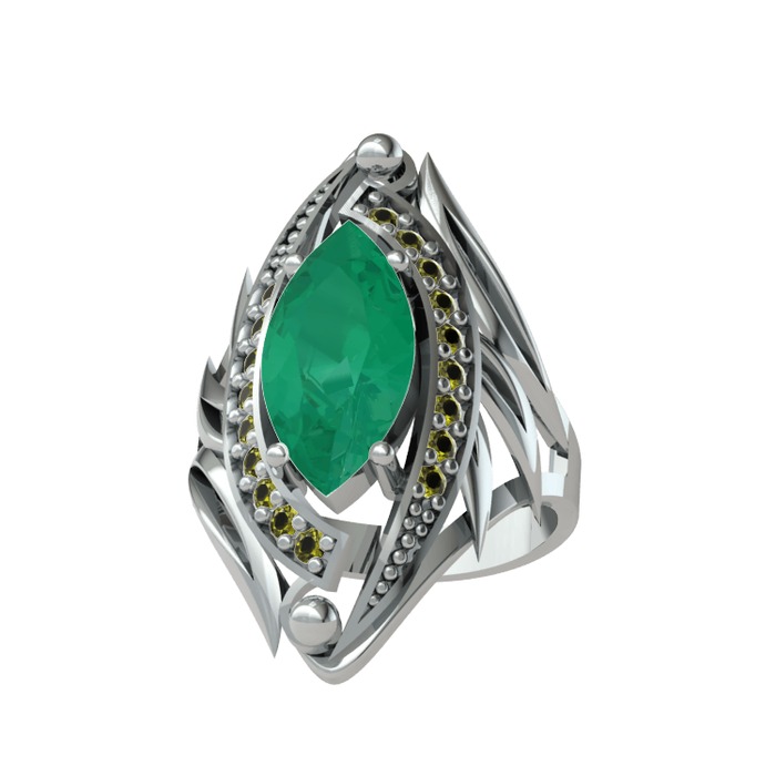 Kök zümrüt ve peridot 18 ayar beyaz altın yüzük