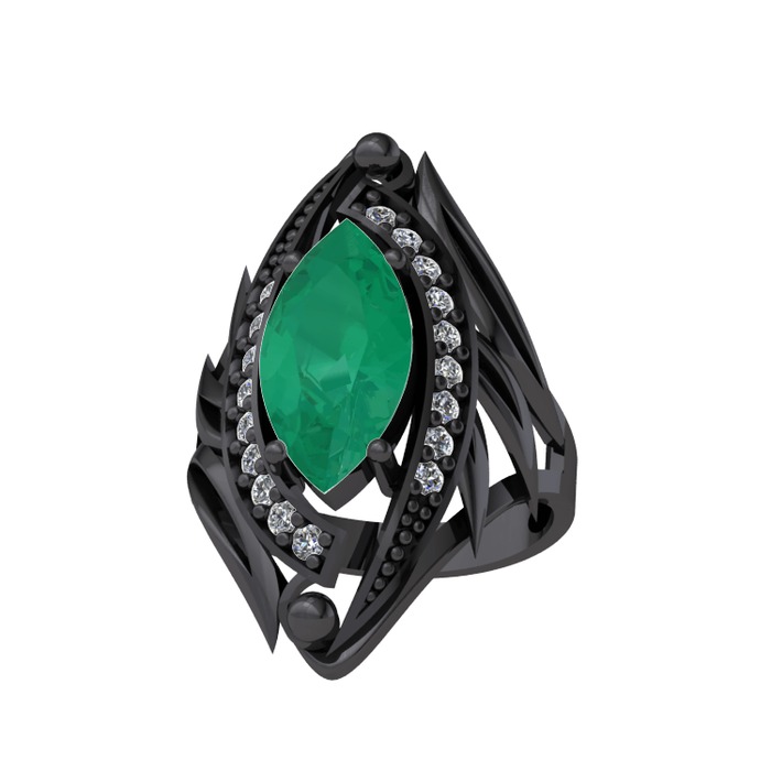 Kök zümrüt ve pırlanta 925 ayar siyah rodyum kaplama gümüş yüzük (0.36 karat)