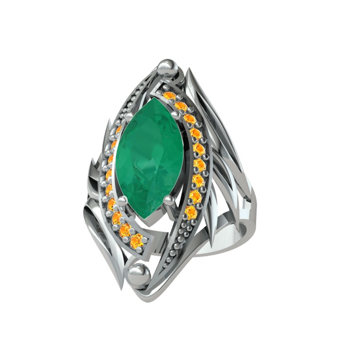 Kök zümrüt ve sitrin 18 ayar beyaz altın yüzük