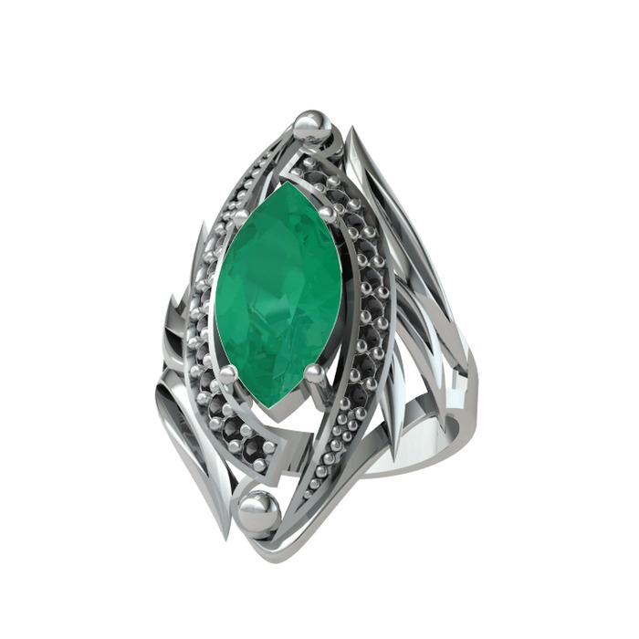 Kök zümrüt ve siyah zirkon 925 ayar gümüş yüzük