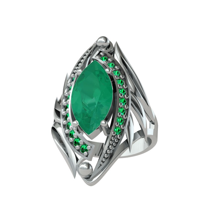 Kök zümrüt ve yeşil kuvars 18 ayar beyaz altın yüzük