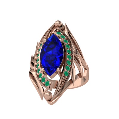 Lab safir ve kök zümrüt 14 ayar rose altın yüzük