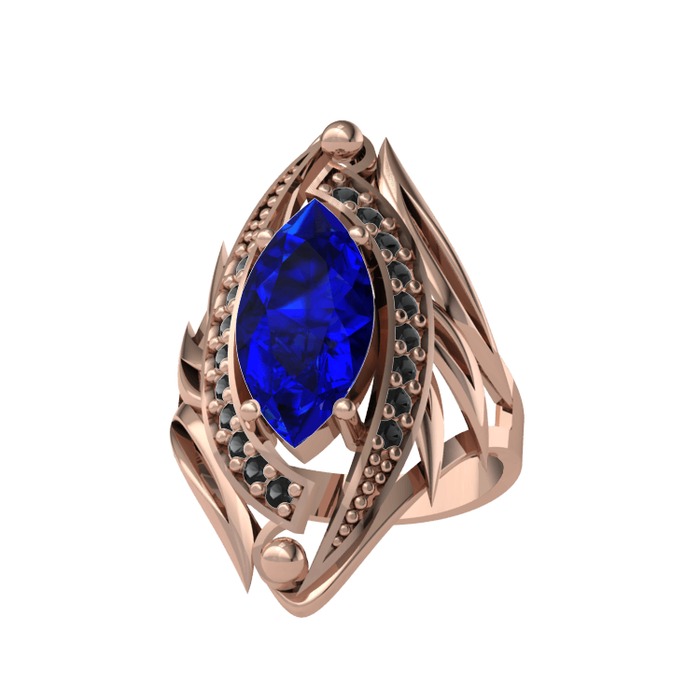 Lab safir ve siyah zirkon 18 ayar rose altın yüzük
