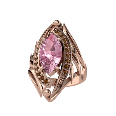 Pembe kuvars ve dumanlı kuvars 18 ayar rose altın yüzük