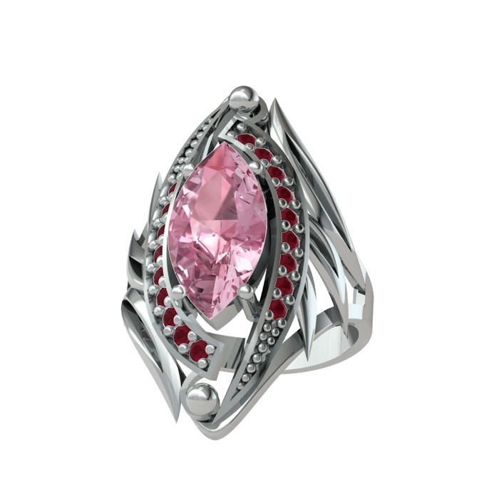 Pembe kuvars ve kök yakut 925 ayar gümüş yüzük