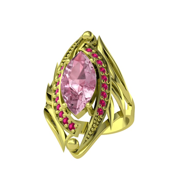 Pembe kuvars ve rodolit garnet 18 ayar altın yüzük