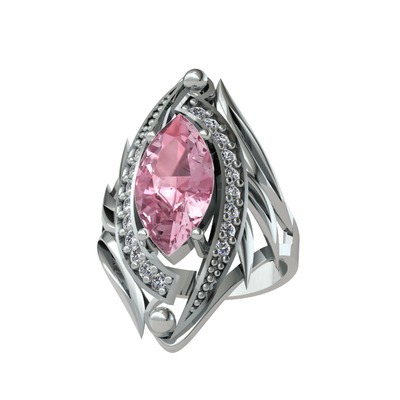 Pembe kuvars ve swarovski 8 ayar beyaz altın yüzük