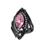 Pembe kuvars ve swarovski 925 ayar siyah rodyum kaplama gümüş yüzük