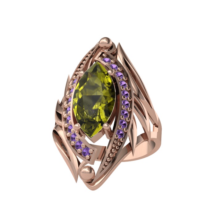 Peridot ve ametist 18 ayar rose altın yüzük