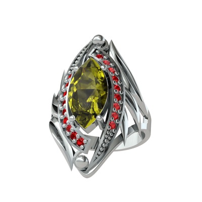 Peridot ve garnet 18 ayar beyaz altın yüzük