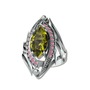 Peridot ve pembe kuvars 14 ayar beyaz altın yüzük