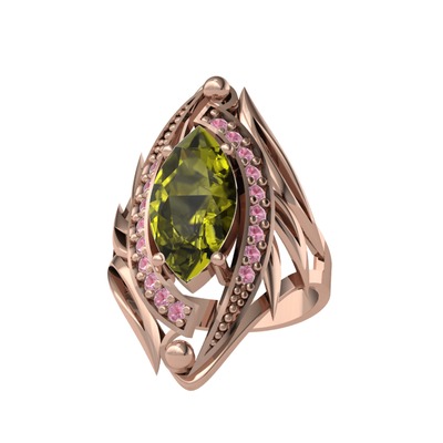 Peridot ve pembe kuvars 18 ayar rose altın yüzük