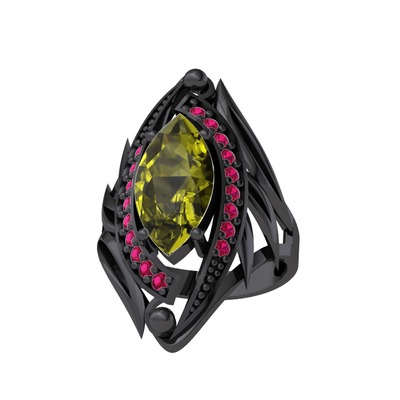 Peridot ve rodolit garnet 925 ayar siyah rodyum kaplama gümüş yüzük