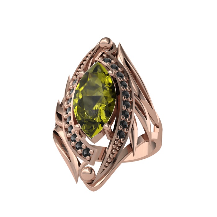 Peridot ve siyah zirkon 18 ayar rose altın yüzük
