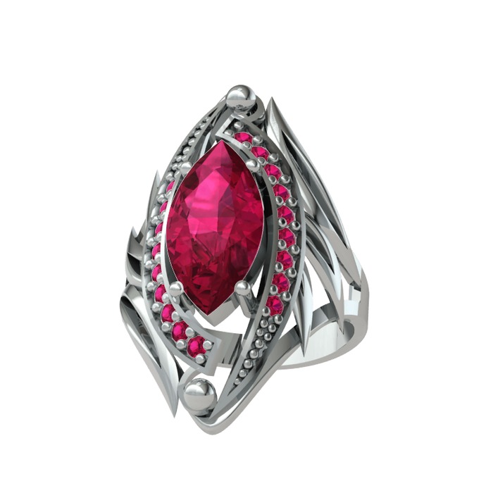 Rodolit garnet 8 ayar beyaz altın yüzük