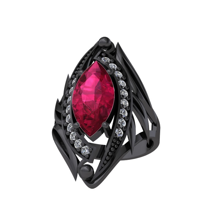 Rodolit garnet ve beyaz zirkon 925 ayar siyah rodyum kaplama gümüş yüzük