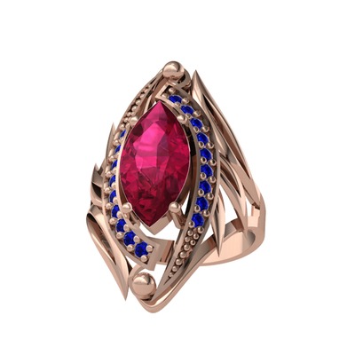 Rodolit garnet ve lab safir 925 ayar rose altın kaplama gümüş yüzük