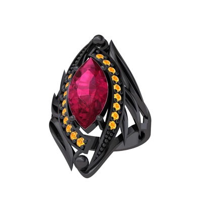 Rodolit garnet ve sitrin 925 ayar siyah rodyum kaplama gümüş yüzük