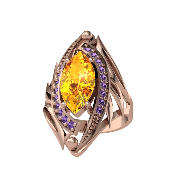 Sitrin ve ametist 18 ayar rose altın yüzük