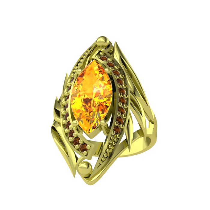 Sitrin ve dumanlı kuvars 8 ayar altın yüzük