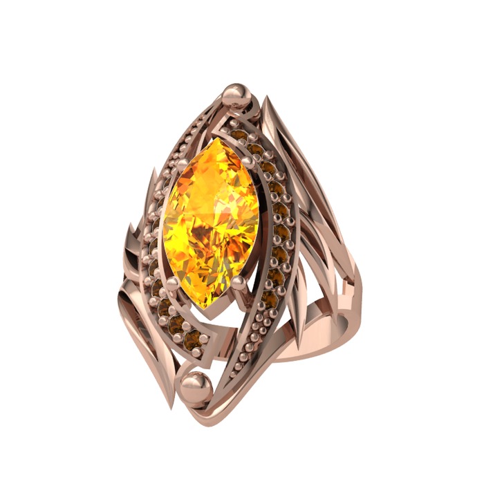 Sitrin ve dumanlı kuvars 925 ayar rose altın kaplama gümüş yüzük