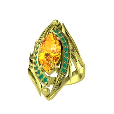 Sitrin ve kök zümrüt 925 ayar altın kaplama gümüş yüzük