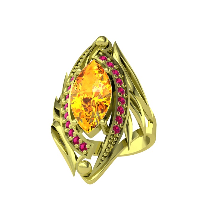 Sitrin ve rodolit garnet 18 ayar altın yüzük