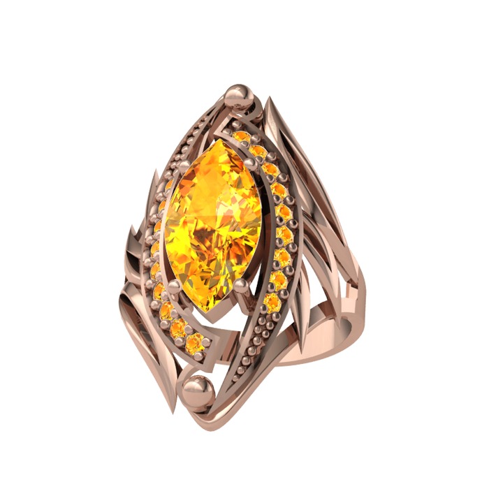 Sitrin 925 ayar rose altın kaplama gümüş yüzük
