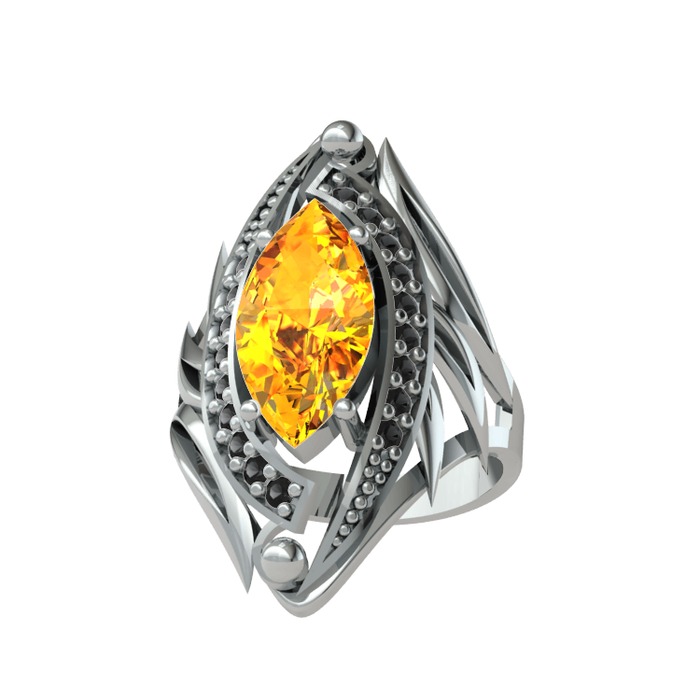 Sitrin ve siyah zirkon 18 ayar beyaz altın yüzük