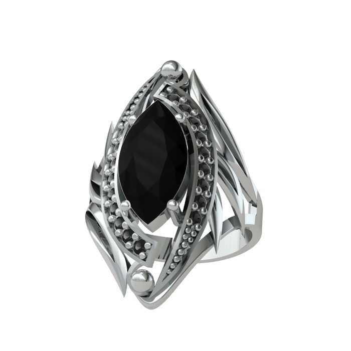 Siyah zirkon 14 ayar beyaz altın yüzük