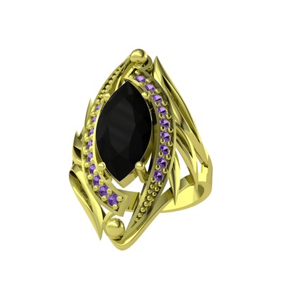 Siyah zirkon ve ametist 18 ayar altın yüzük