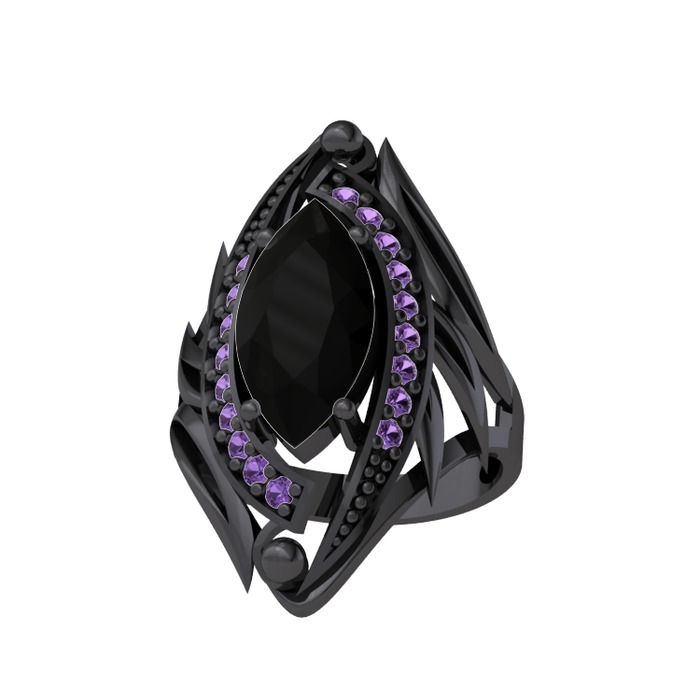 Siyah zirkon ve ametist 925 ayar siyah rodyum kaplama gümüş yüzük