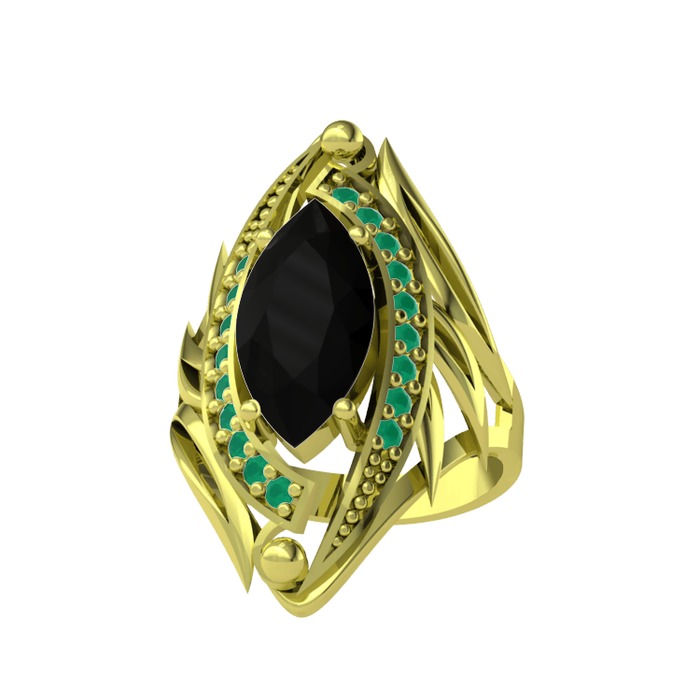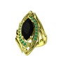 Siyah zirkon ve kök zümrüt 925 ayar altın kaplama gümüş yüzük