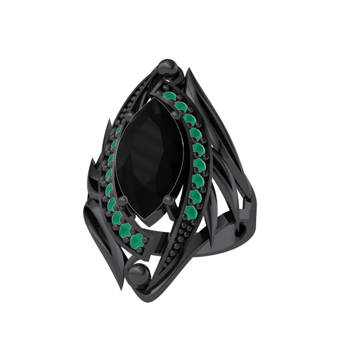 Siyah zirkon ve kök zümrüt 925 ayar siyah rodyum kaplama gümüş yüzük