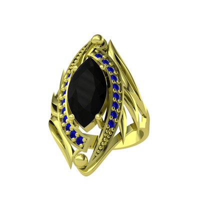 Siyah zirkon ve lab safir 8 ayar altın yüzük