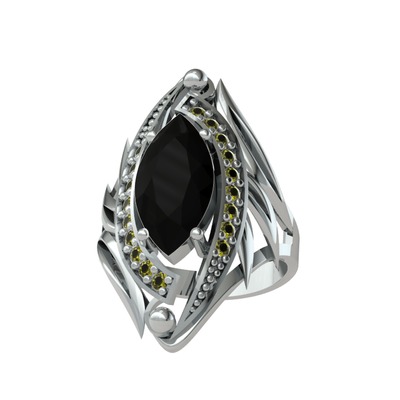 Siyah zirkon ve peridot 8 ayar beyaz altın yüzük
