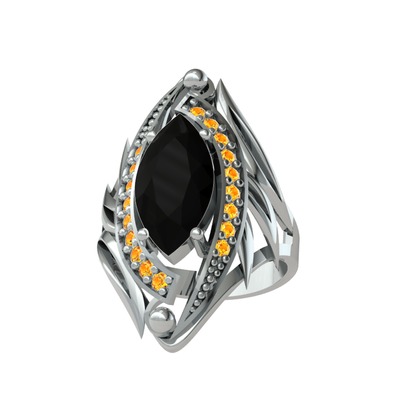 Siyah zirkon ve sitrin 8 ayar beyaz altın yüzük