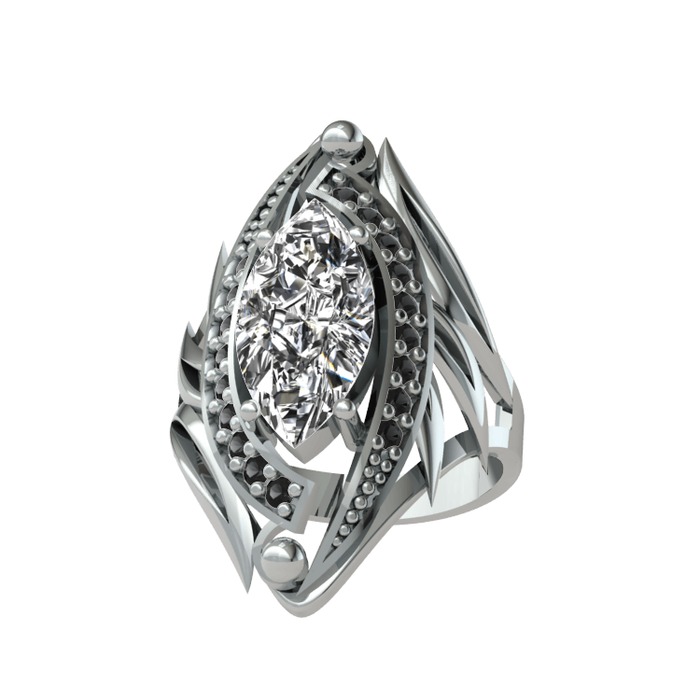 Swarovski ve siyah zirkon 18 ayar beyaz altın yüzük