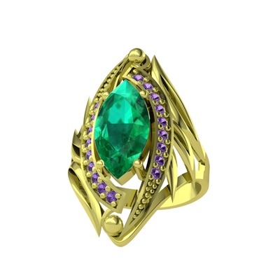 Yeşil kuvars ve ametist 925 ayar altın kaplama gümüş yüzük
