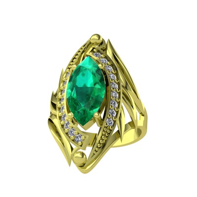 Yeşil kuvars ve beyaz zirkon 18 ayar altın yüzük