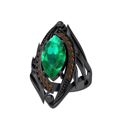 Yeşil kuvars ve dumanlı kuvars 925 ayar siyah rodyum kaplama gümüş yüzük