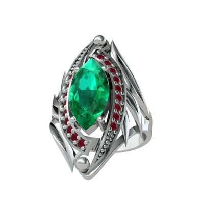 Yeşil kuvars ve kök yakut 18 ayar beyaz altın yüzük