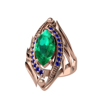 Yeşil kuvars ve lab safir 18 ayar rose altın yüzük