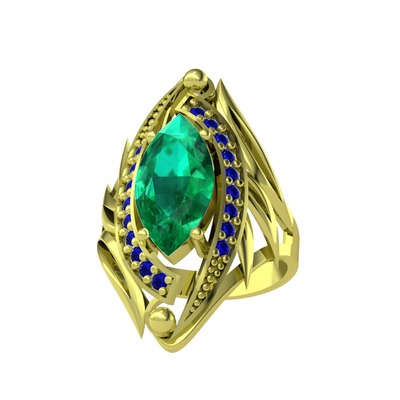 Yeşil kuvars ve lab safir 8 ayar altın yüzük