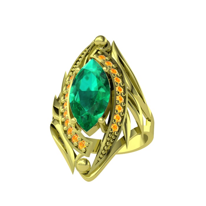 Yeşil kuvars ve sitrin 14 ayar altın yüzük