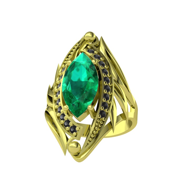 Yeşil kuvars ve siyah zirkon 14 ayar altın yüzük