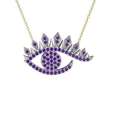 Ametist 14 ayar beyaz altın kolye (40 cm altın rolo zincir)