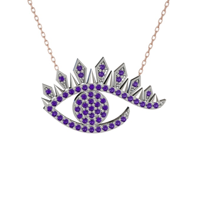 Ametist 14 ayar beyaz altın kolye (40 cm rose altın rolo zincir)